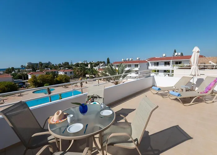 Diese Unterkunft verfügt über eine Küche sowie ist mit einer Gefriertruhe, einem Herd und einem Kochfeld ausgestattet. Die einladenden Unterkünfte ist in der Nähe von der nächstgelegenen Bushaltestelle 102 Nissi Beach. Es gibt einen Swimmingpool, in dem die Gäste entspannen können.